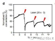 圖2、老鼠的腫瘤組織內給藥后,三個周期的激光照射(808 nm,2Wcm-2)后腫瘤內的溶解氧(DO)實時變化