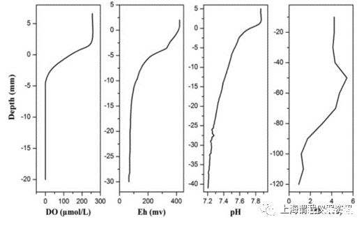 unisense微電極的應用:使用重力取心器(直徑110毫米,長度500毫米)從樣品位置收集了四個沉積物核心,并保持了沉積物-水界面上方20厘米的上覆水。使用氧氣和氧化還原微電極(OX 100和RD-100,Unisense,丹麥)測量沉積物中的溶解氧(DO)和氧化還原狀態(Eh)。通過pH微電極(Unisense)獲得pH值。