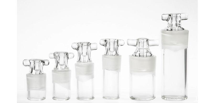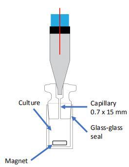 玻璃微呼吸瓶可泡在水浴中通過水壓密閉或滴加油在瓶塞毛細孔上進行密閉處理。微呼吸電極從微呼吸瓶塞頂部的毛細孔伸進微呼吸瓶中。微呼吸瓶體積:400uL、500uL、1mL、2mL、4mL、8mL(雙頭瓶)。可用注射器向微呼吸瓶中注射試劑來研究樣品的代謝和毒理。